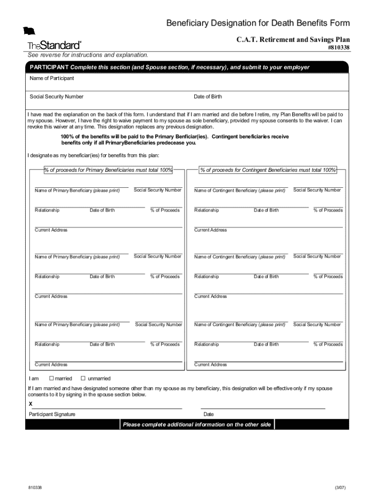 The signing and notarization process is a critical aspect of the Beneficiary Designation for Death Benefits Form. Participants must comply with the following signature requirements: