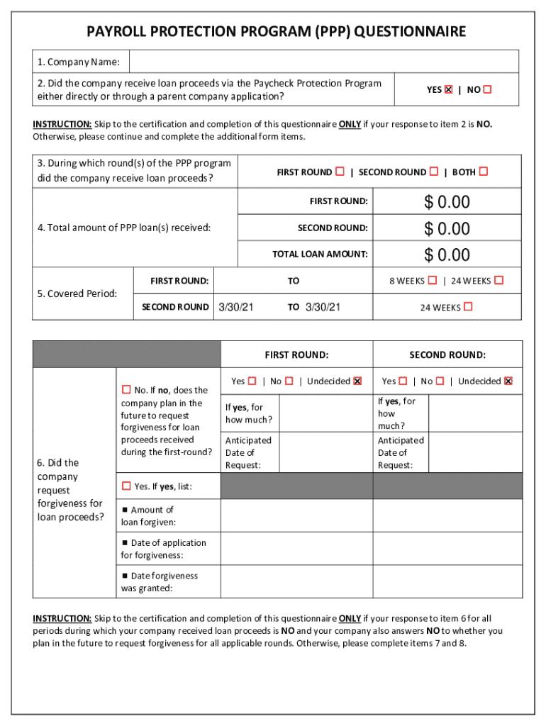 Companies are required to fill out the PPP Questionnaire to effectively document their loan usage. This form streamlines the process of reporting expenses and utilization of PPP loan proceeds, making it easier for businesses to navigate the complexities of loan forgiveness. By accurately utilizing this form, businesses can expedite their loan forgiveness applications and reduce the risk of errors that might lead to complications.