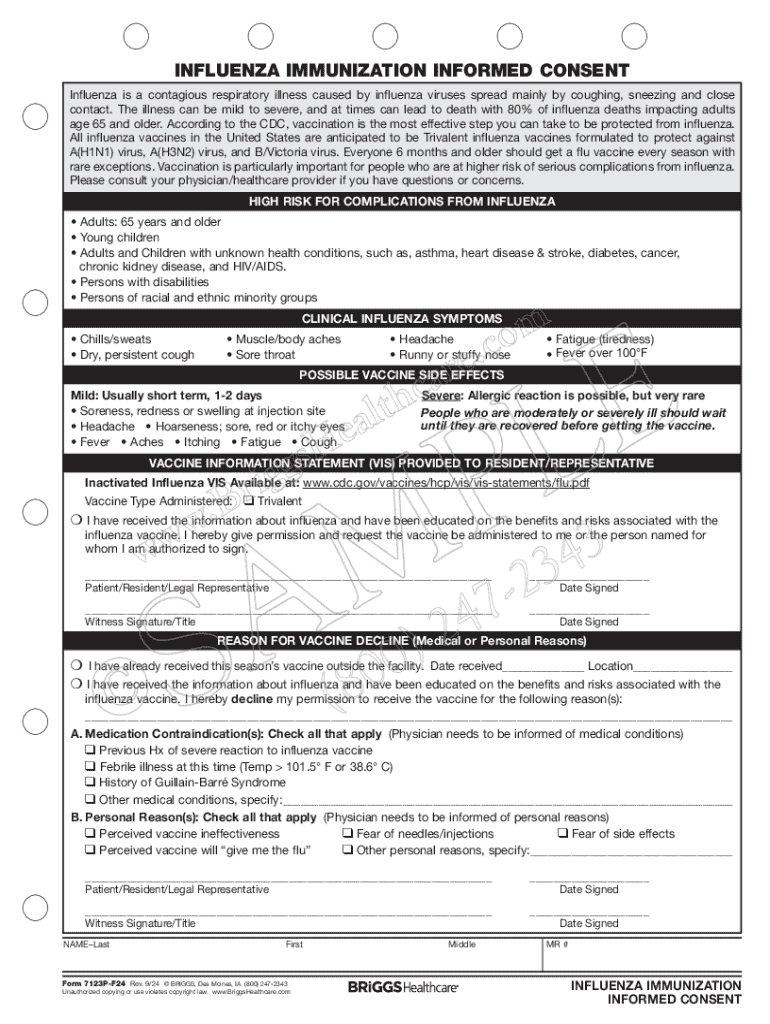 This form is intended for patients receiving the influenza vaccine and their legal representatives if the patient is unable to sign.
