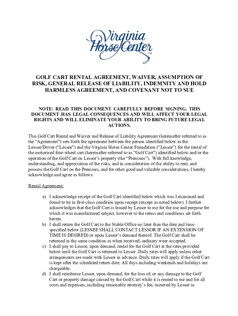 Key Features of the Golf Cart Rental Agreement and Waiver