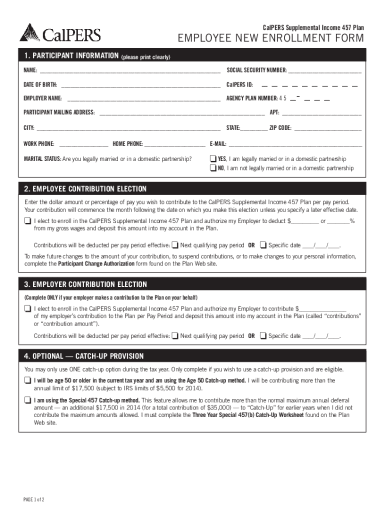 The CalPERS Supplemental Income 457 Plan Employee New Enrollment Form is essential for employees looking to participate in the CalPERS Supplemental Income 457 Plan. This plan offers significant retirement benefits tailored to public employees in California.