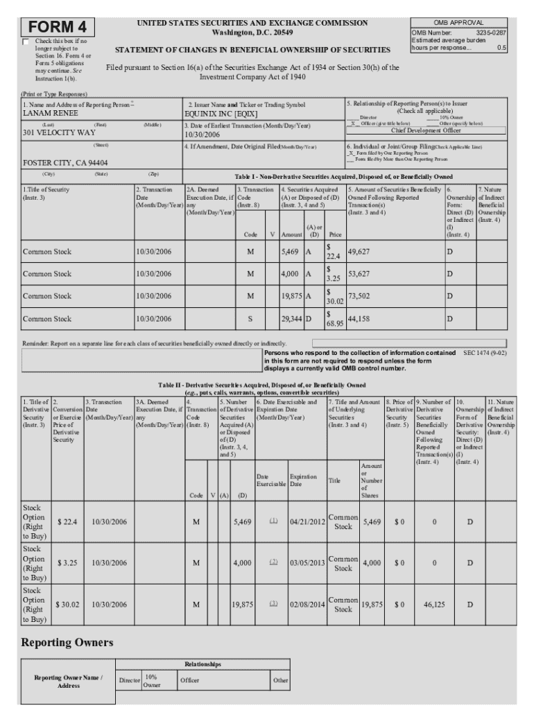 Sample of a Completed Form 4 Statement of Changes in Beneficial Ownership