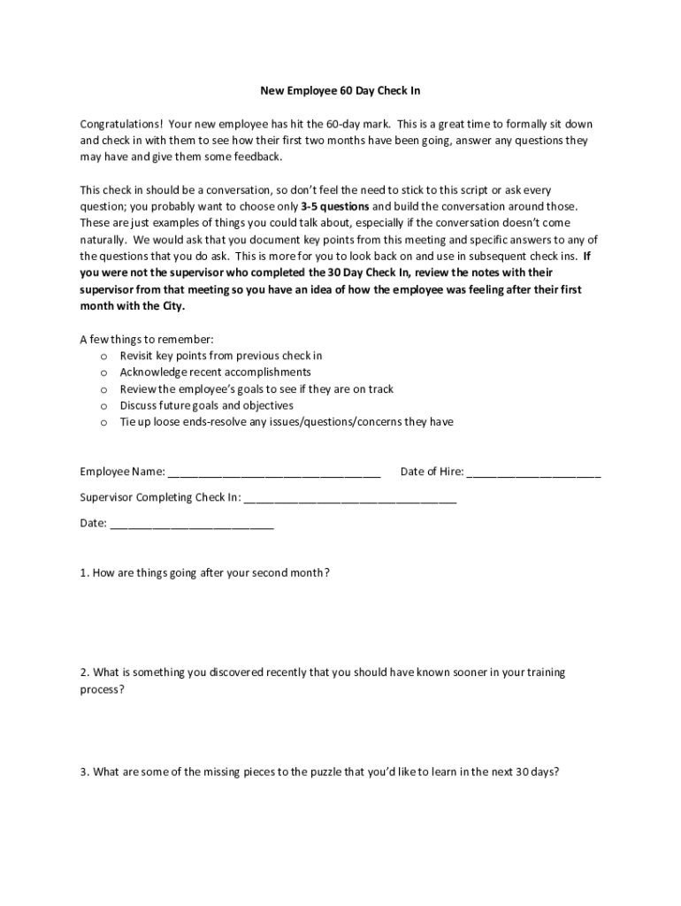 Get the free New Employee 60 Day Check In