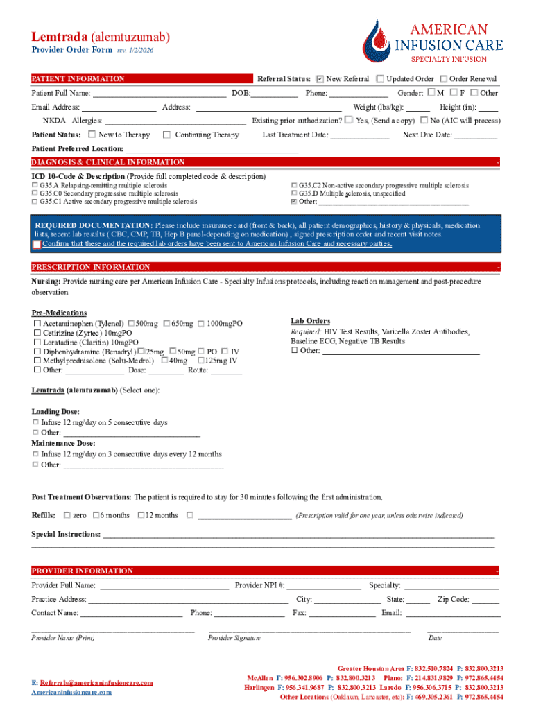 Get the free Lemtrada Provider Order Form