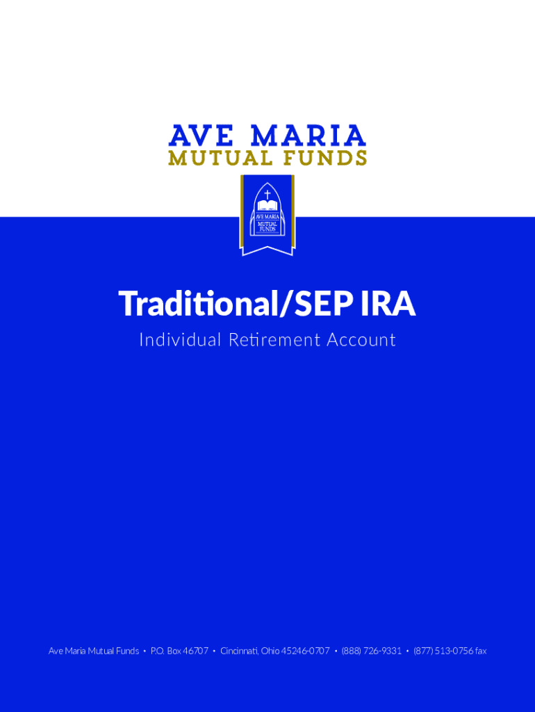 The Traditional/SEP IRA Application Form is a financial document used by individuals to establish an Individual Retirement Account with Ave Maria Mutual Funds.