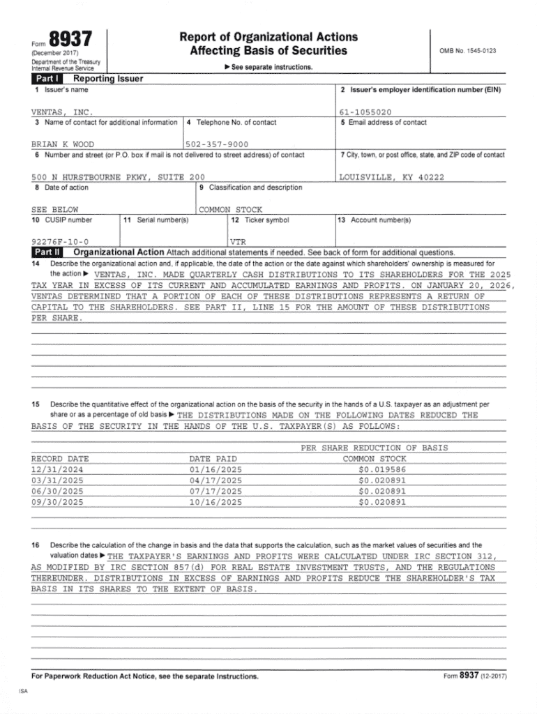 Report of Organizational Actions Affecting Basis of SecuritiesForm 8937 (December 2017) Department of the Treasury Internal Revenue ServicePart I 1 See separate instructions.Reporting IssuerIssuer\'s