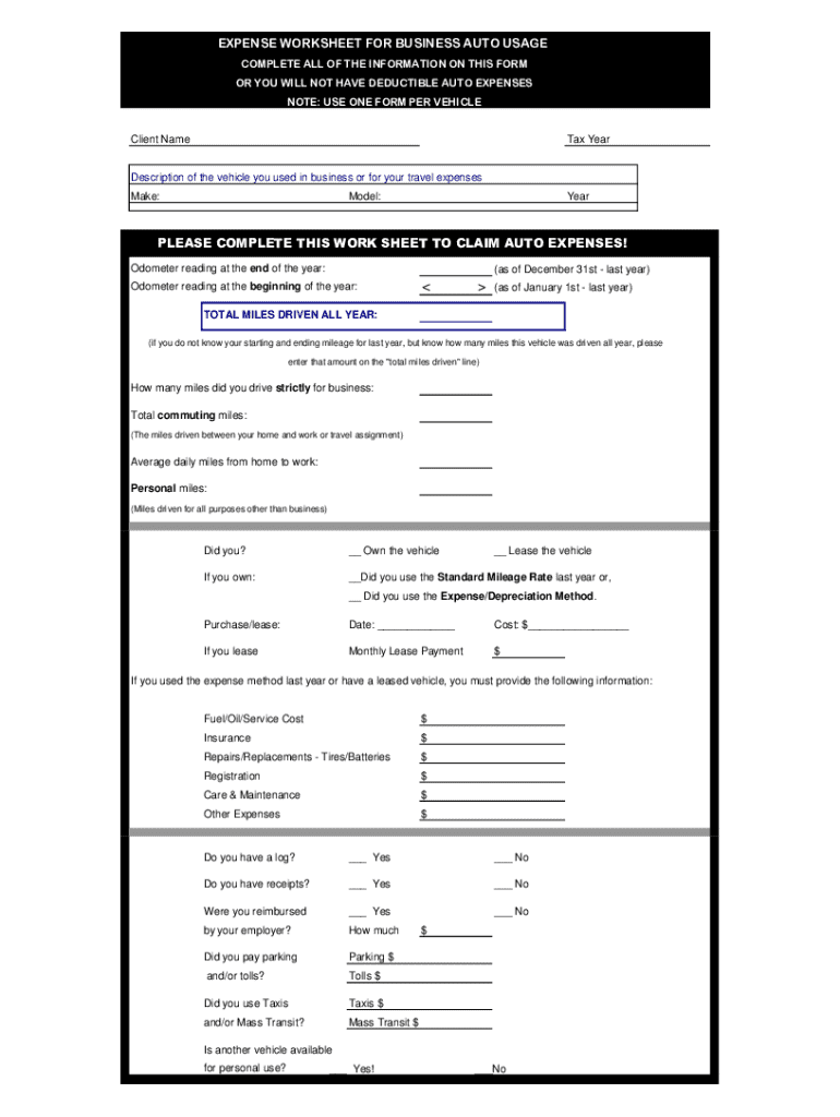 Comprehensive Guide to vehicle expense tax form