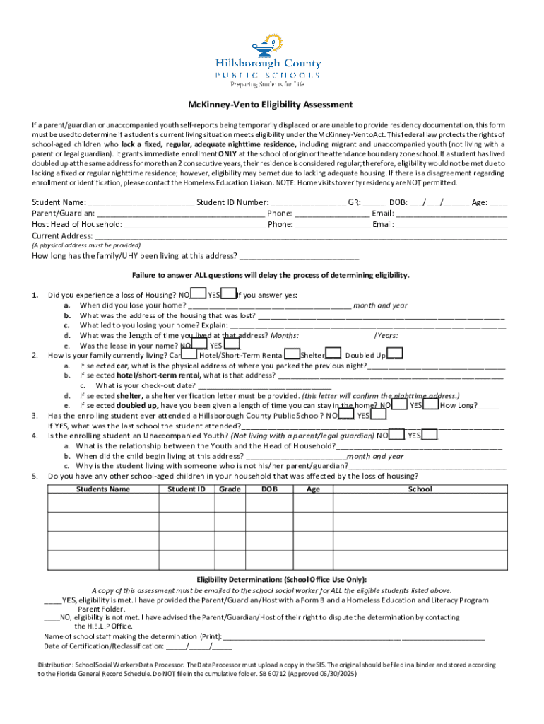 Get the free McKinney-Vento Eligibility Assessment Form
