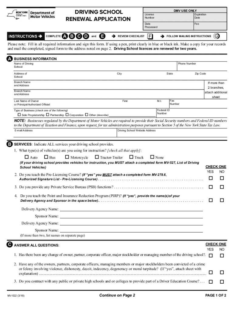 The MV-522 form is a crucial document for renewing driving school licenses in New York. This application is specifically designed for driving schools needing to extend their operational licenses, ensuring compliance with state regulations and maintaining their ability to provide driver education.