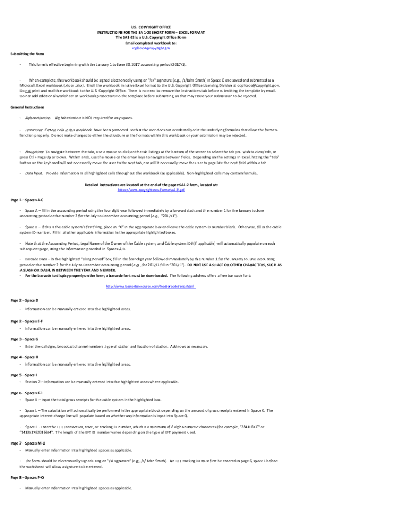 This form is essential for cable system owners, clarifying their legal obligations related to copyright reporting. Accurate submissions benefit users by ensuring compliance, thereby avoiding fines and penalties associated with incorrect or missing information. Moreover, by utilizing the Copyright Office Form SA1-2E, cable owners can streamline their reporting process and enhance their operational efficiency.