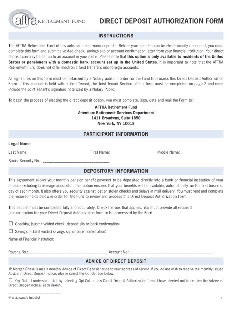 How to Fill Out the AFTRA Retirement Fund Direct Deposit Authorization Form