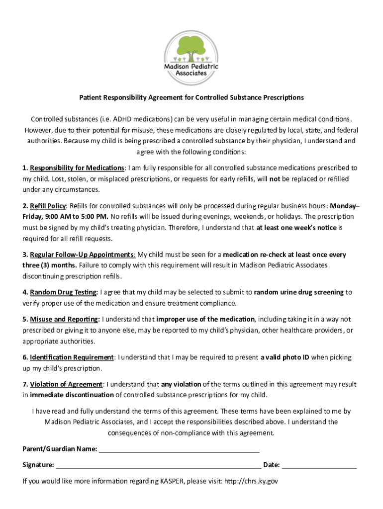 Get the free Patient Responsibility Agreement for Controlled Substance Prescriptions