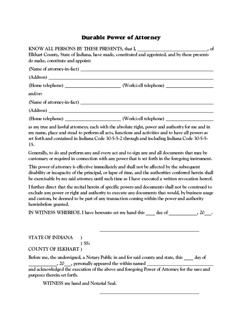 Purpose and Benefits of the Indiana Durable Power of Attorney Form