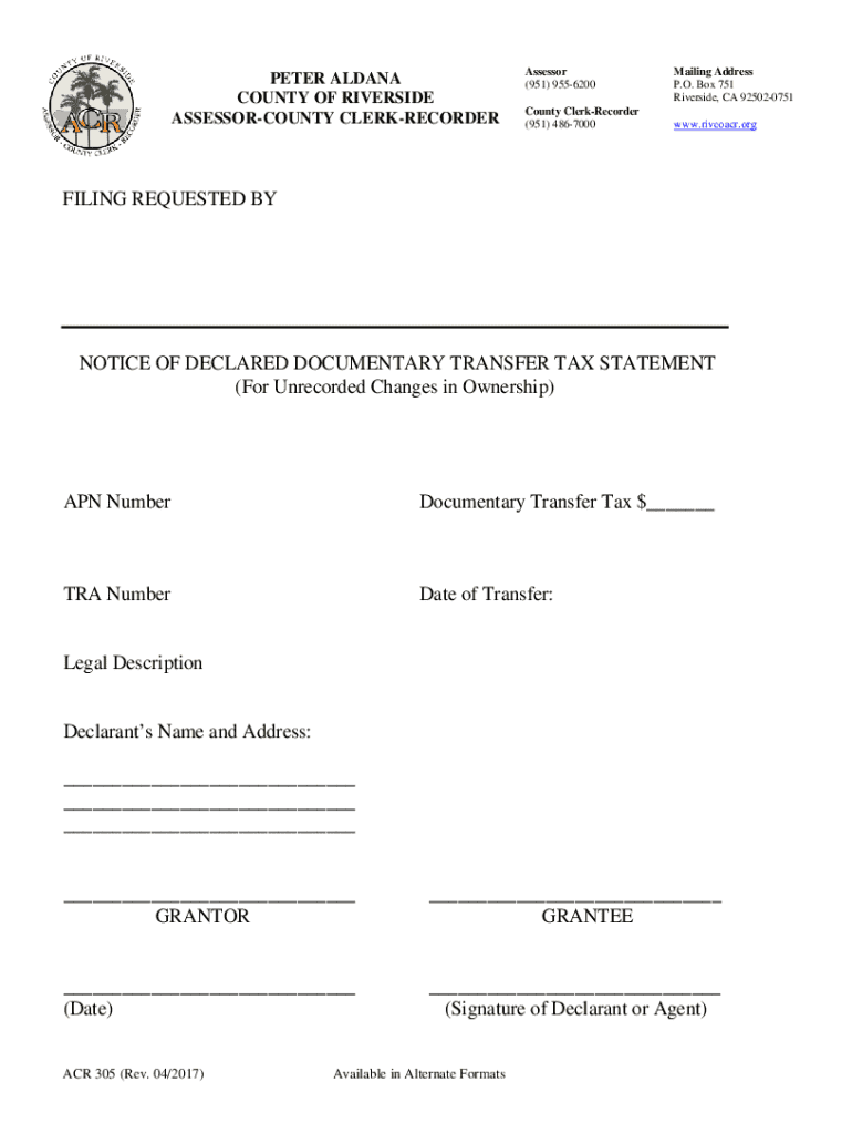 Get the free California Notice of Declared Documentary Transfer Tax Statement