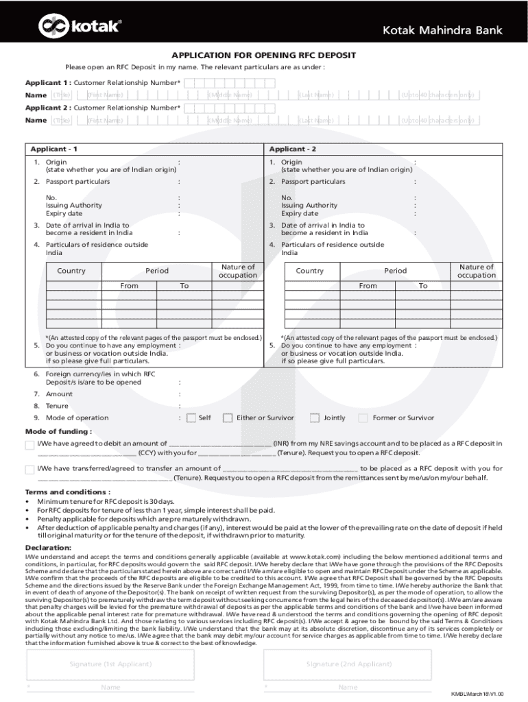 The RFC Deposit Application Form serves as a key document for individuals wishing to establish a Resident Foreign Currency (RFC) deposit account in India. This form captures essential personal details and enables the opening of accounts that facilitate foreign currency deposits. For Indian residents and expatriates with foreign income, understanding the RFC Deposit Application Form is crucial for effective financial management.