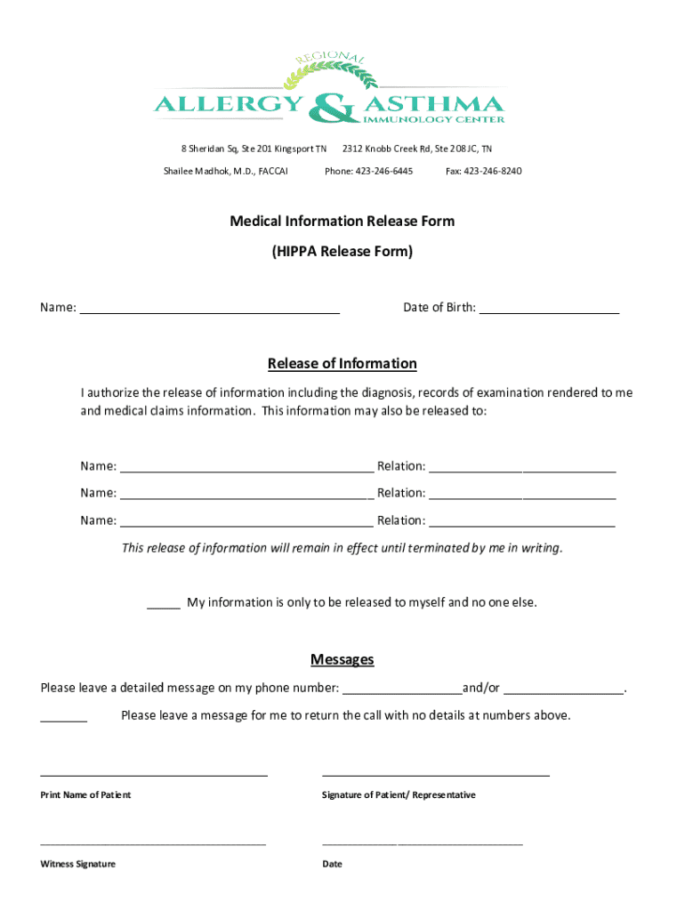 Get the free Medical Information Release Form