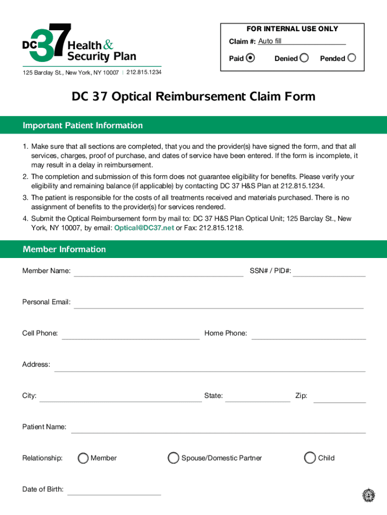 Key Features of the DC 37 Optical Reimbursement Claim Form