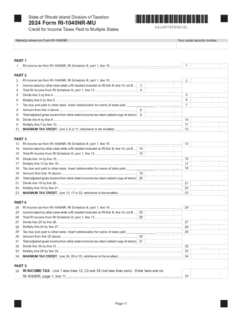 The Rhode Island Form RI-1040NR-MU is a state tax document designed for non-residents who earn income in Rhode Island. This form plays a crucial role in enabling non-residents to claim tax credits for income taxes paid to other states, thereby preventing double taxation. To complete the RI-1040NR-MU, individuals must provide specific details about their income and taxes paid to other jurisdictions.