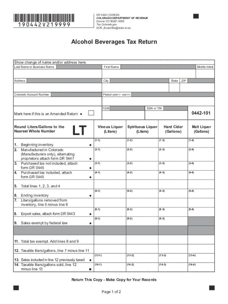 The Colorado Alcohol Beverages Tax Return is documented through the DR 0442 form, which serves as a vital state tax document. This form is specifically designed for manufacturers and wholesalers of alcohol beverages operating within Colorado. It encompasses various types of alcohol, including wine, malt liquor, hard cider, and distilled spirits. For businesses in the alcoholic beverage industry, understanding this tax return is crucial for compliance with state regulations and maintaining operational integrity.