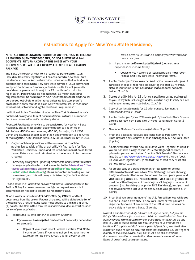 To apply for residency, you must demonstrate that you have lived in New York State for a minimum period and provide supporting documents, including tax forms and proof of residency. Students enrolled at SUNY are usually eligible.