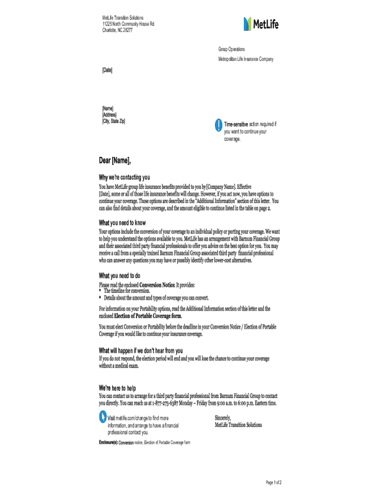 Who Needs the MetLife Notice of Group Life Insurance Conversion Privilege?