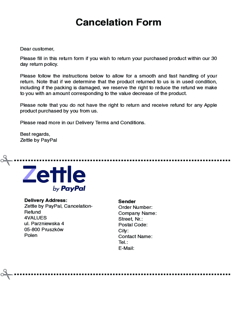 The Zettle by PayPal Return Form is a crucial document for customers seeking to initiate refund requests within a 30-day return policy. This form streamlines the process, enabling users to submit essential information efficiently.