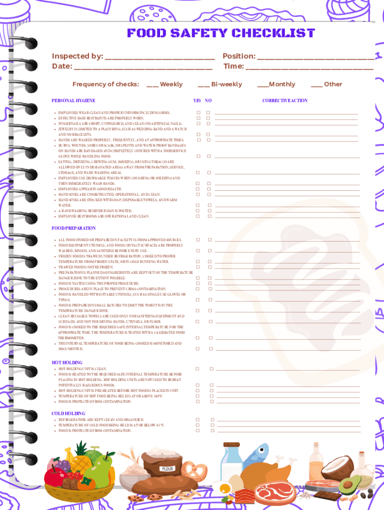 The Food Safety Checklist Form is a healthcare document used by food service providers to ensure compliance with food safety regulations.