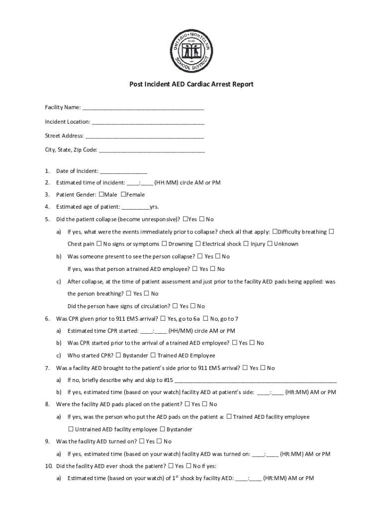 Get the free Post Incident AED Cardiac Arrest Report