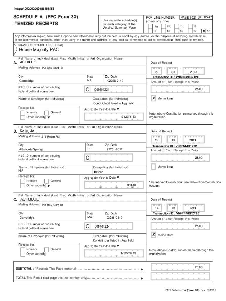 Typically, the FEC requires that contributors' information, such as their identification and donation records, supports the amounts reported in the FEC Form 3X Schedule A. Ensure that all amounts are backed by accurate and verifiable records.