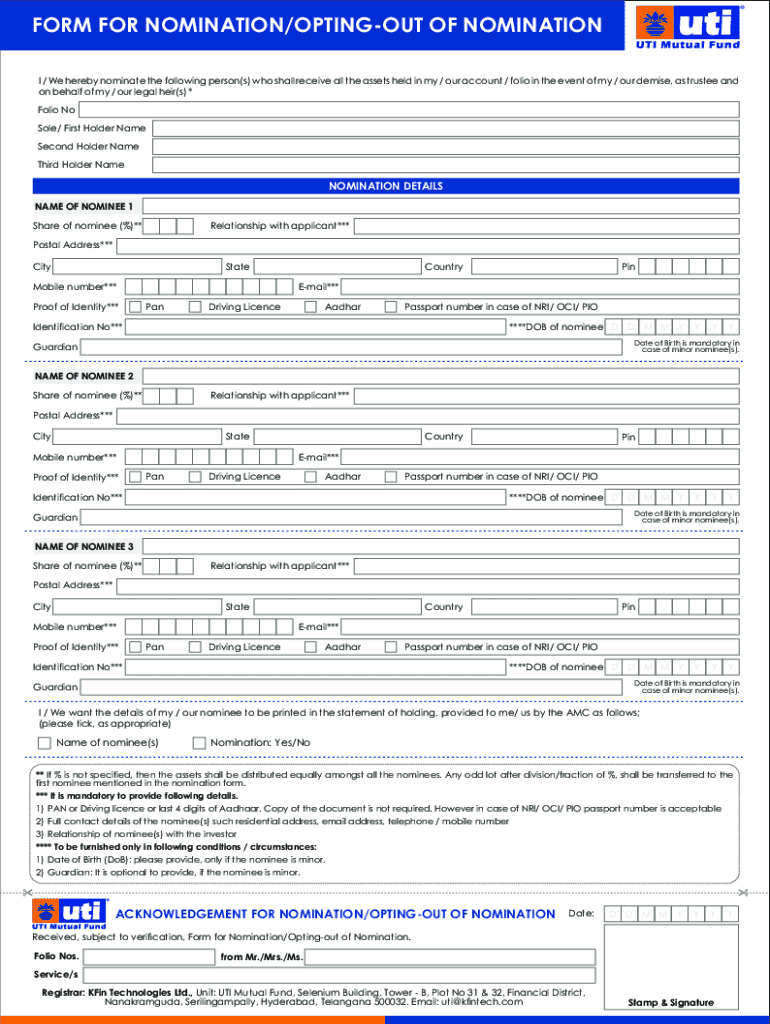 Understanding the key features of the Mutual Fund Nomination Form is essential for effective completion. Each form includes vital sections that must be correctly filled out: