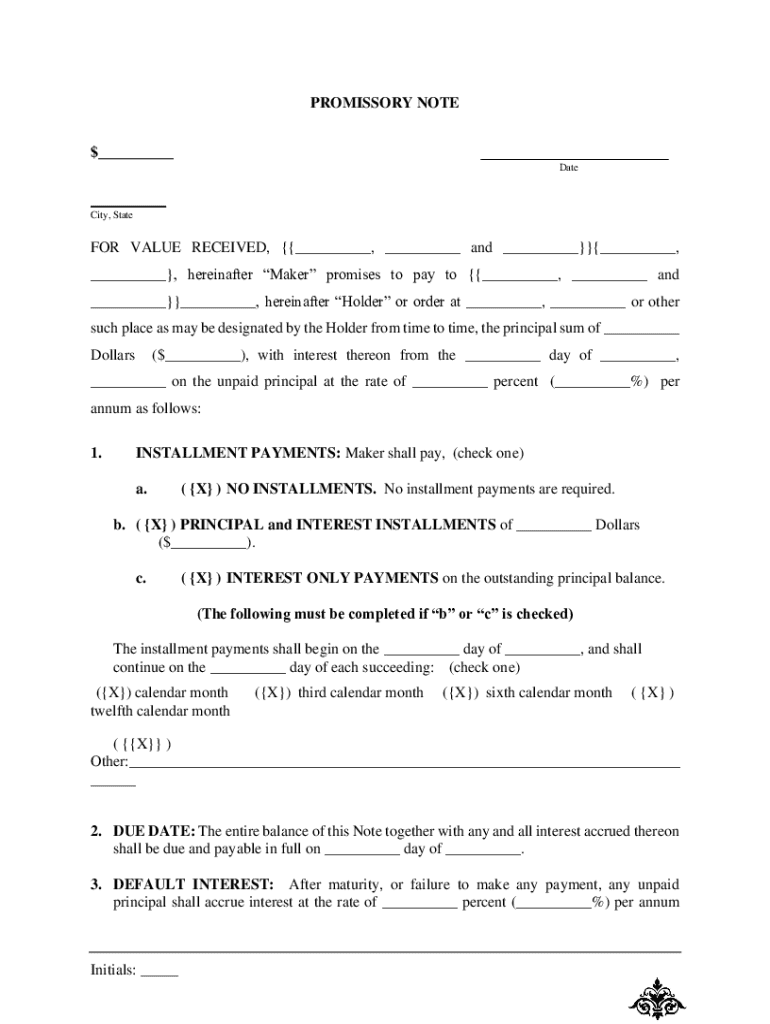 Get the free promissory note template