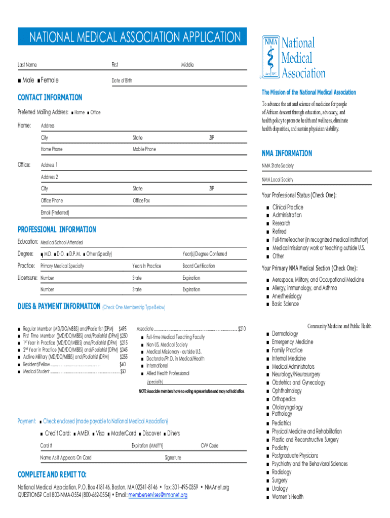 Get the free National Medical Association Application