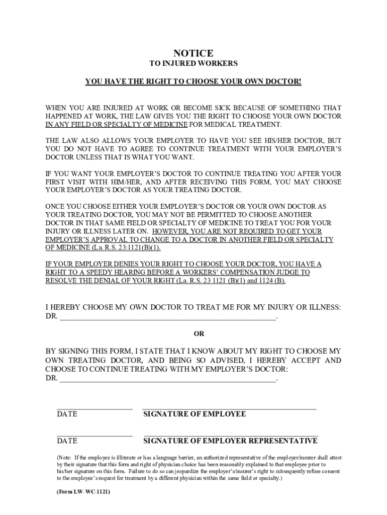 Any injured worker in Louisiana who needs to assert their right to choose their own doctor for work-related injuries or illnesses is eligible to use this form.