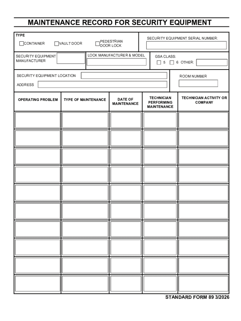 The Maintenance Record is relevant to a diverse audience. Typically, individuals such as federal employees, security personnel, and facility managers will find this form essential. Specific organizational sectors, including government entities and contractors, are mandated to maintain these records to adhere to compliance requirements.