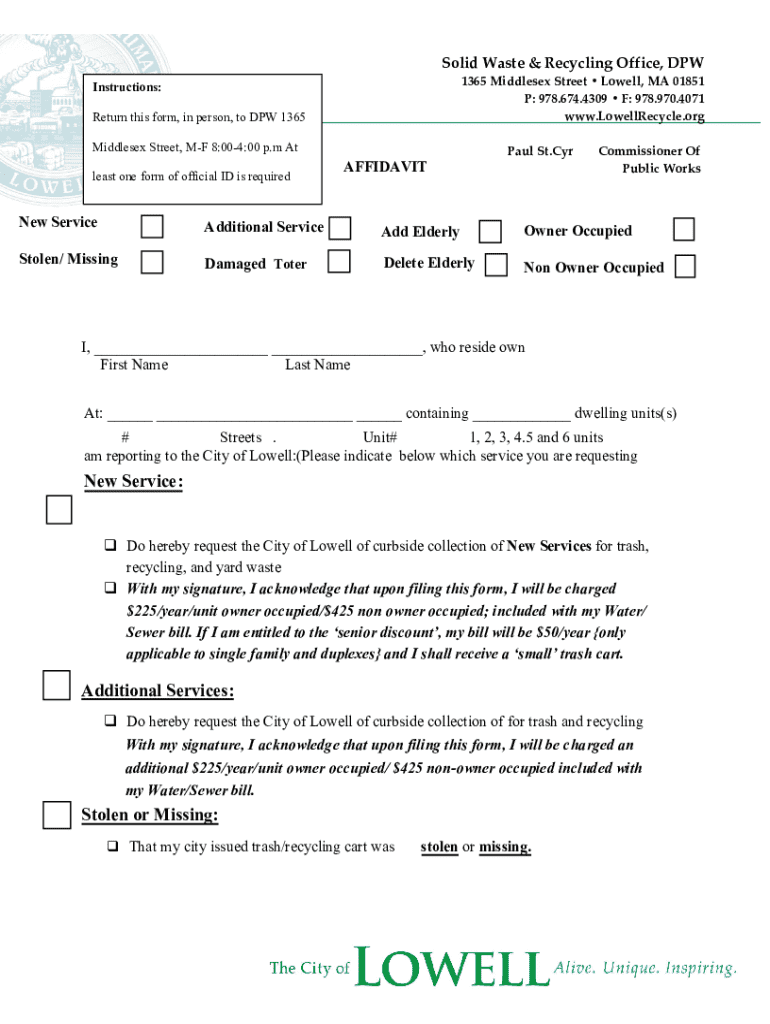 Get the free Lowell Trash and Recycling Service Request Form