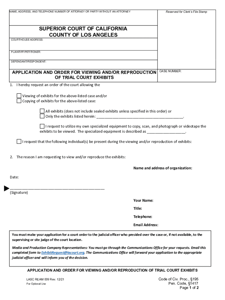 While not explicitly stated, it’s beneficial to include any related court documents that substantiate your request for exhibit access, such as case numbers or prior court orders.