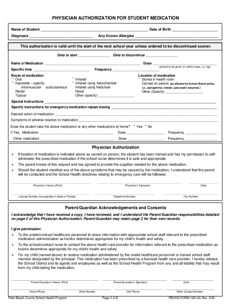 By utilizing the student medication authorization form, schools create a structured process that protects student rights while facilitating necessary medical care during school hours. The physician authorization for medication underscores the importance of thorough communication between educational institutions and families regarding student health needs.