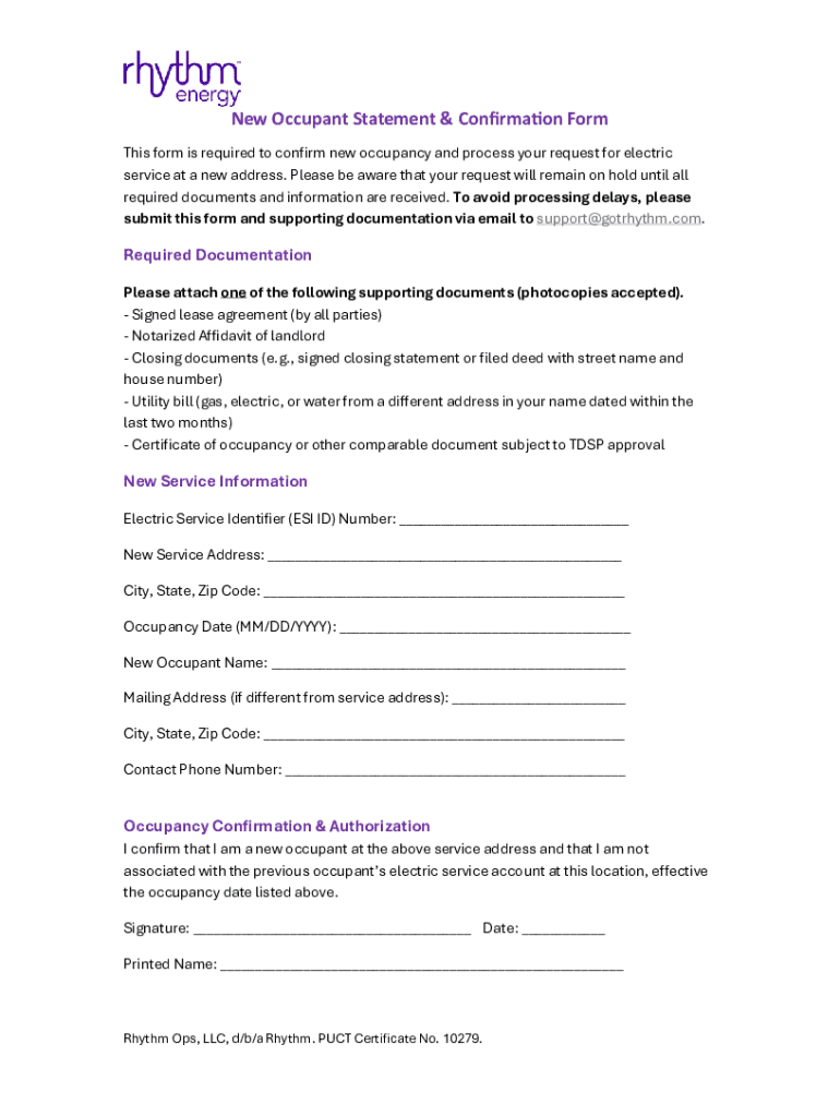 By using the New Occupant Statement & Confirmation Form, new tenants can avoid delays in service activation, while landlords can efficiently manage information updates related to occupancy changes.
