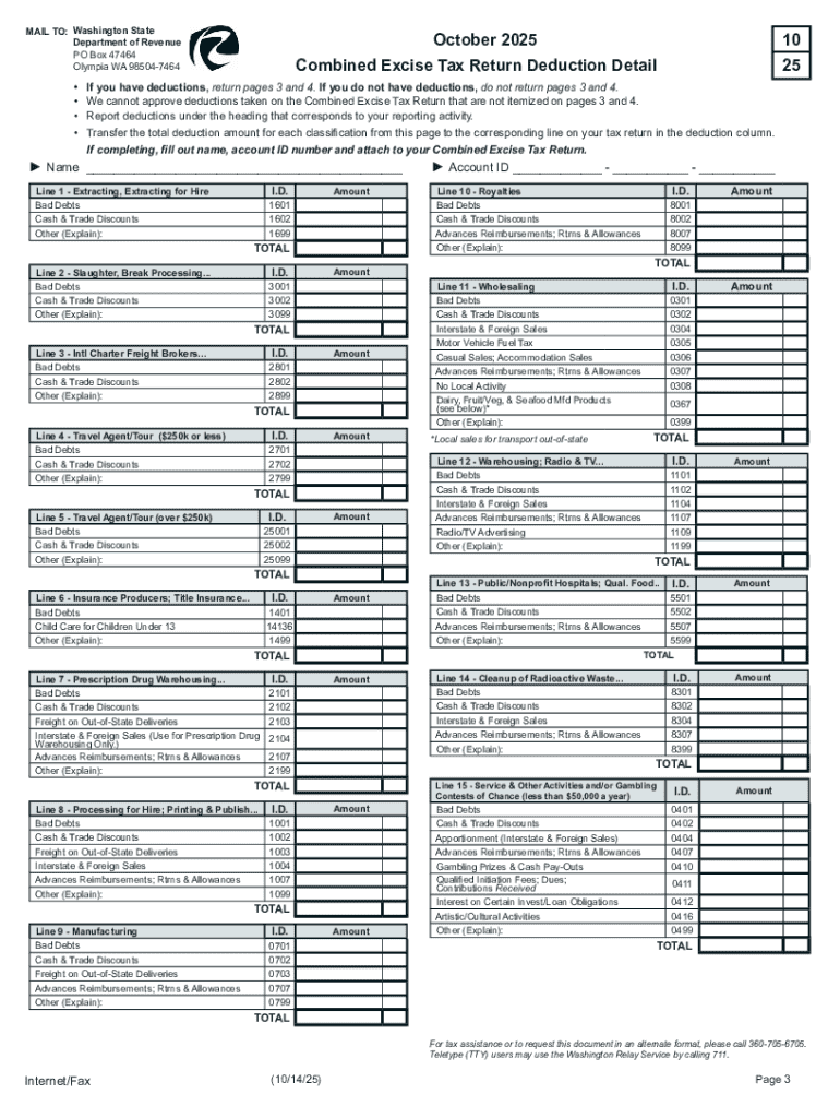 How to Fill Out the Washington State Combined Excise Tax Return Deduction Detail Online