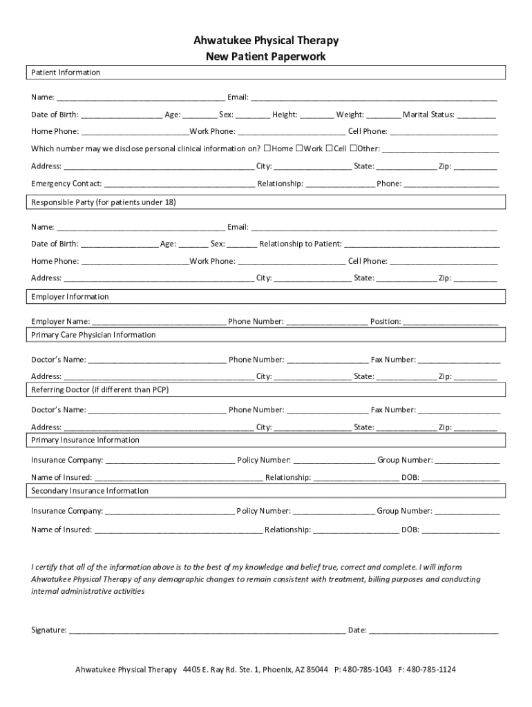 What is the Ahwatukee Physical Therapy New Patient Paperwork?