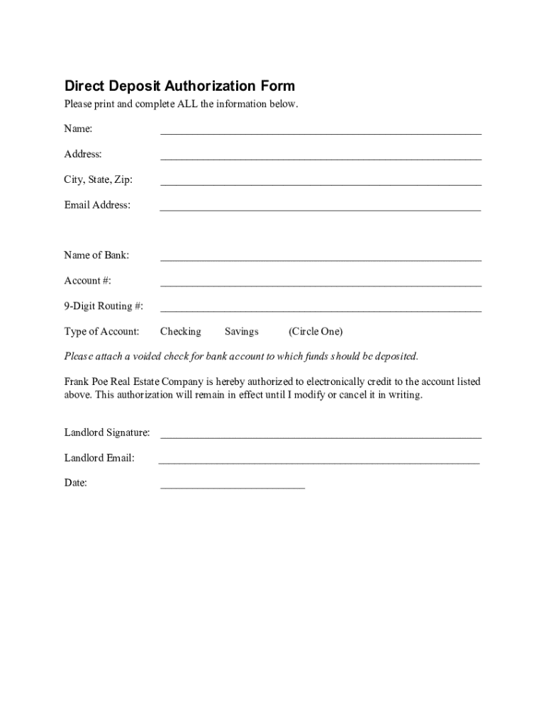Get the free Direct Deposit Authorization Form