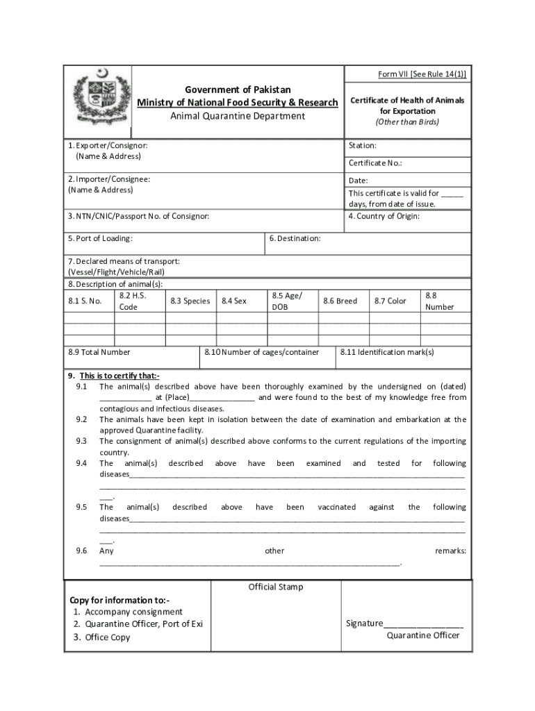 Additionally, the certificate plays a pivotal role in safeguarding animal health and contributes positively to public health by minimizing the risk of disease transmission. As a component of comprehensive animal export documentation in Pakistan, it also underscores the importance of biosecurity measures.