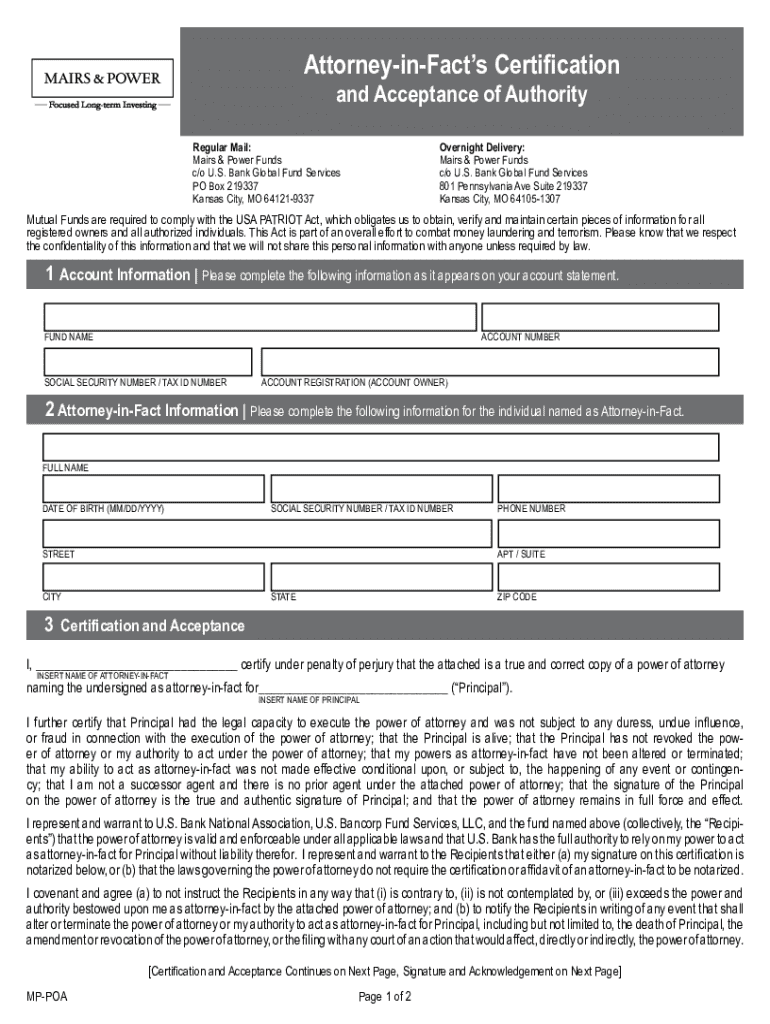 Key Features of the Attorney-in-Fact Certification Form
