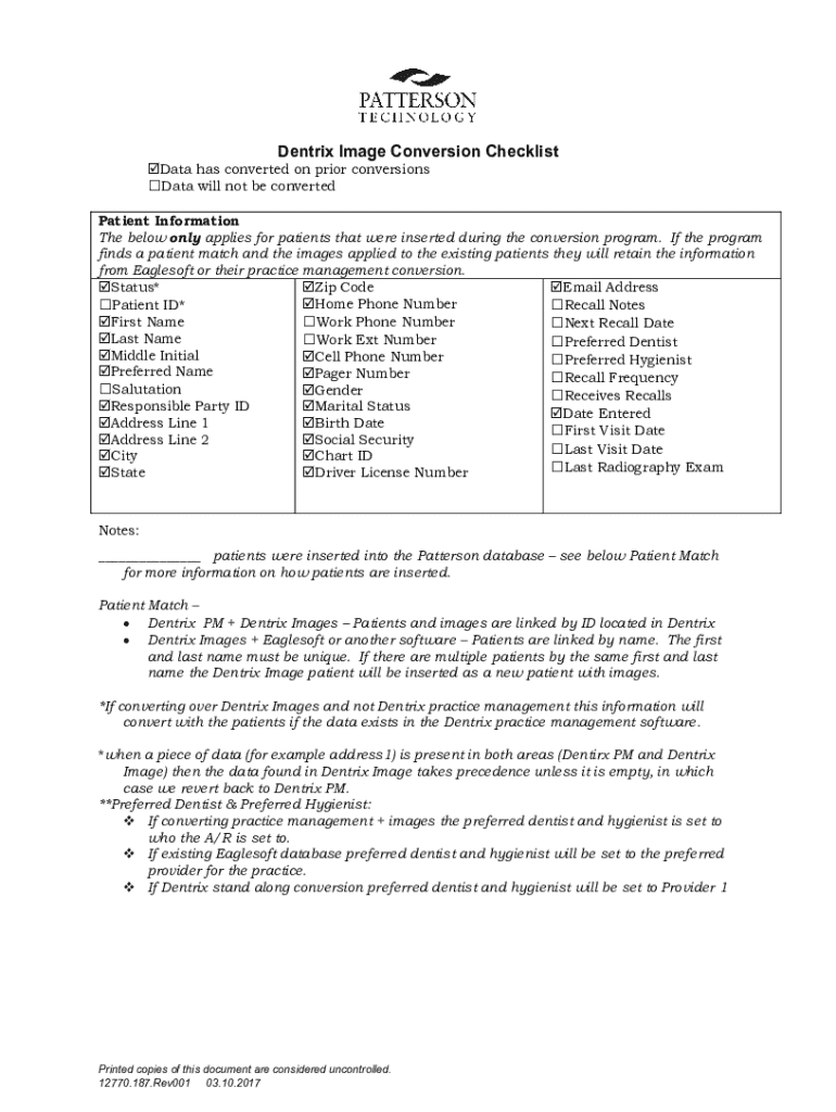 Get the free Dentrix Image Conversion Checklist