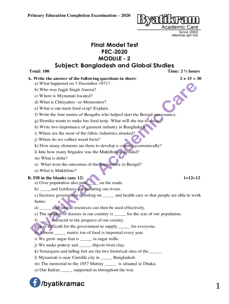 The Primary Education Completion Examination (PEC) serves as a crucial standardization tool within Bangladesh's educational landscape. This examination assesses primary school students' knowledge in various subjects, including Bangladesh and Global Studies. Its primary objective is to evaluate students' understanding in areas such as history, geography, and economics, thus playing a significant role in determining their educational trajectory.