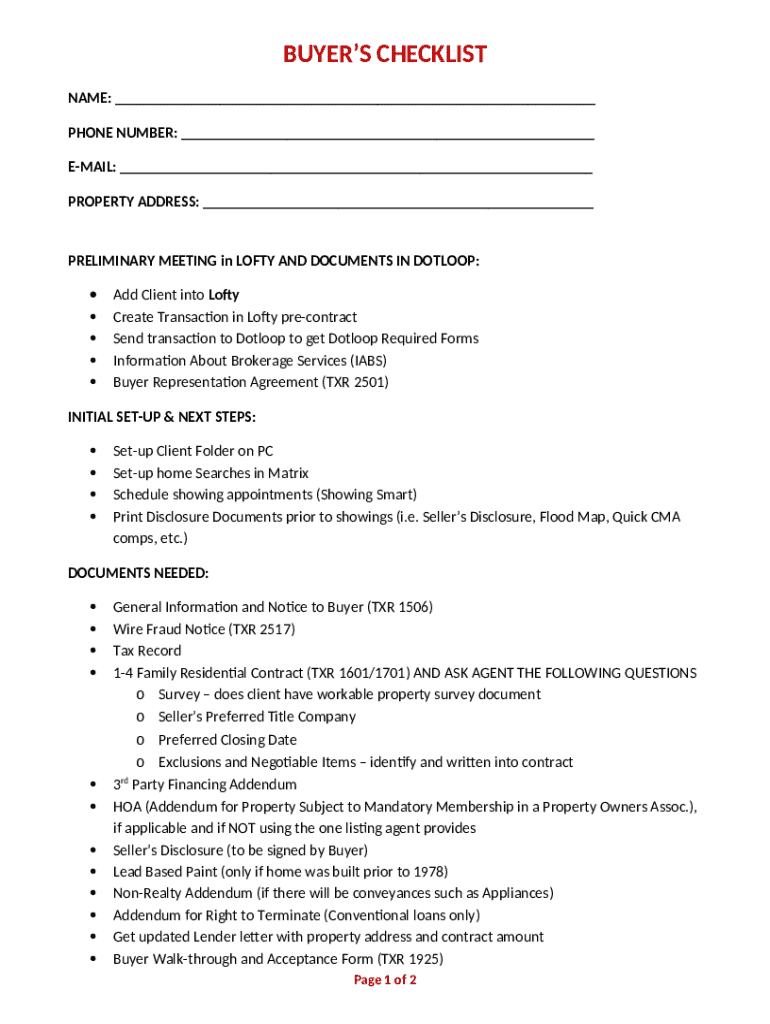How to Fill Out the Texas Real Estate Buyer’s Checklist Online