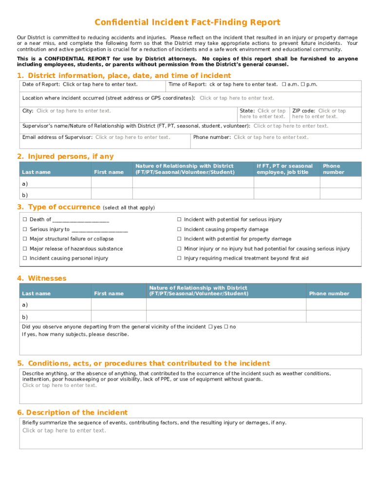 Get the free Confidential Incident Fact-Finding Report