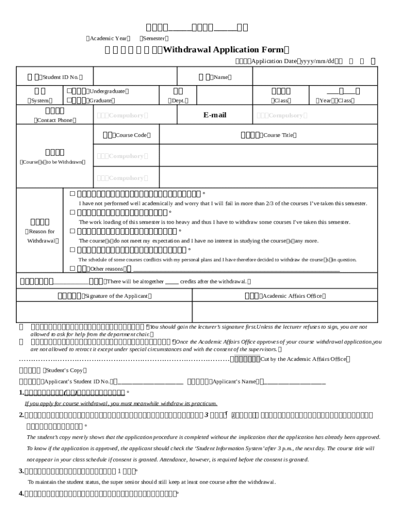 All current students enrolled at Asia University can submit the Withdrawal Application Form when they wish to withdraw from one or more courses.
