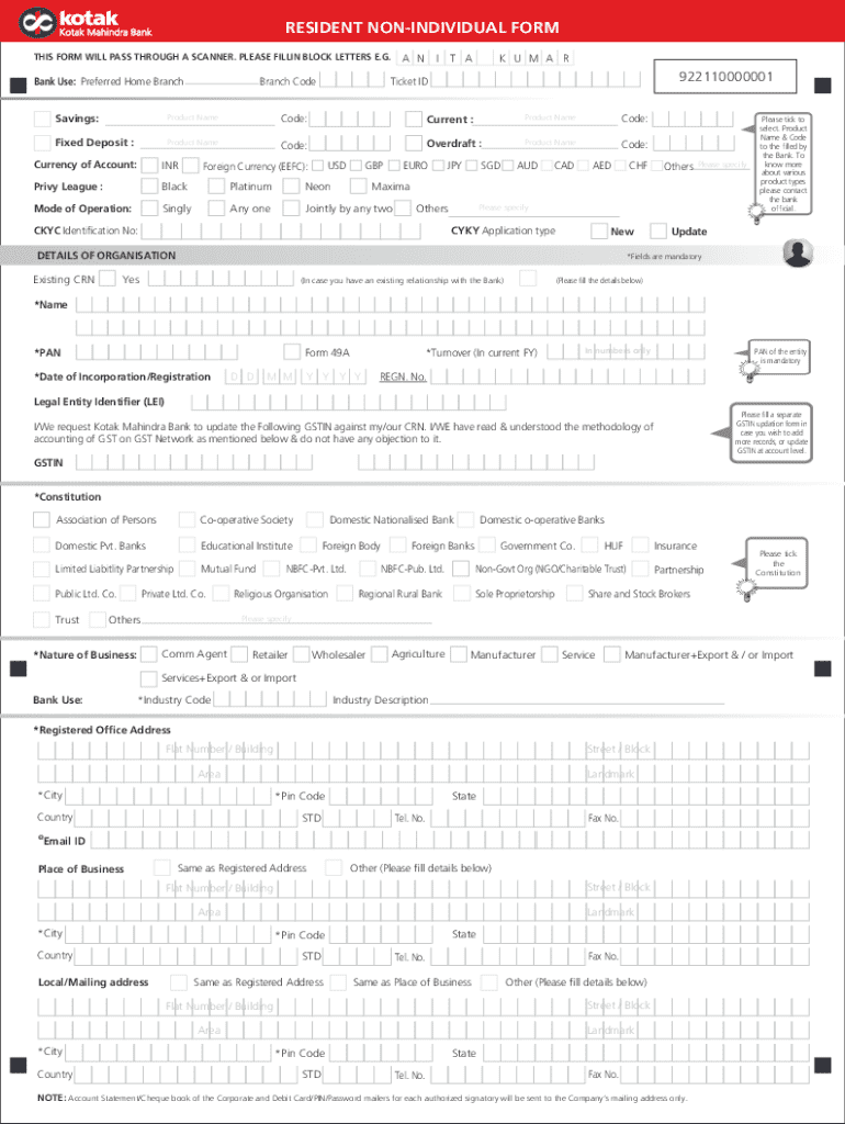 Fill Out Your Kotak Mahindra Bank Resident Non-Individual Form Today!