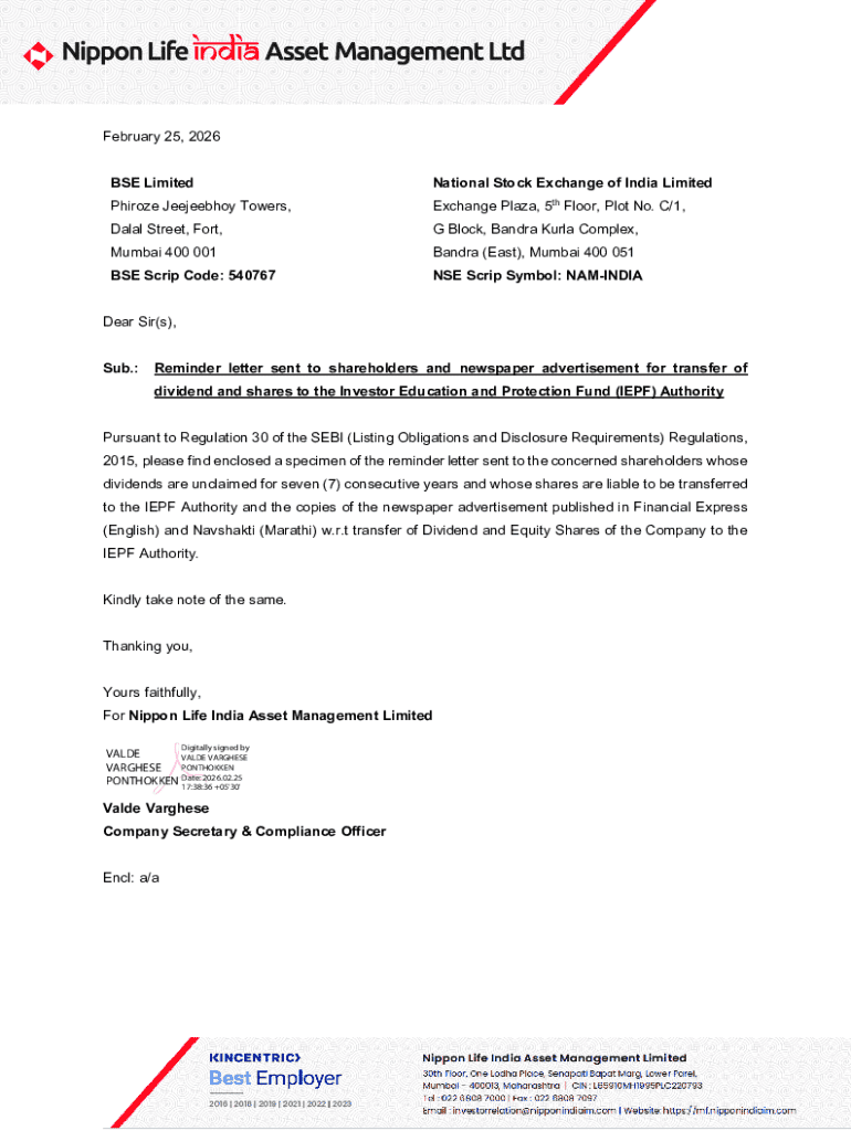 Get the free IEPF Reminder Letter